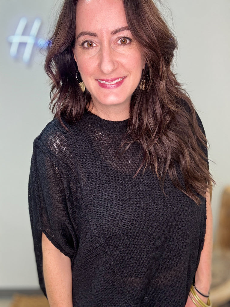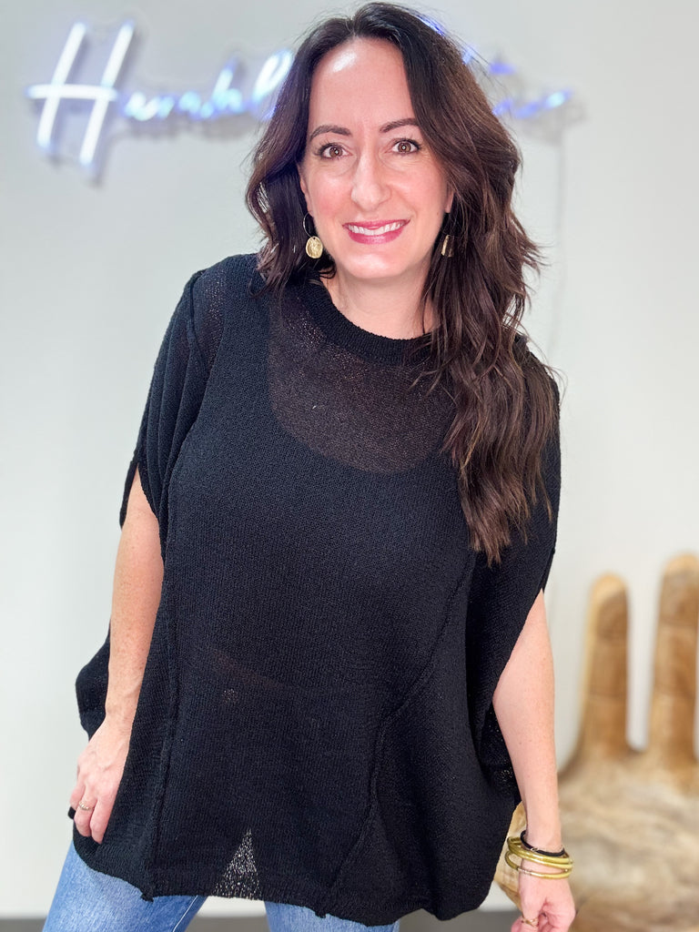 Black Hacci Oversized Short Sleeve Sweatshirt