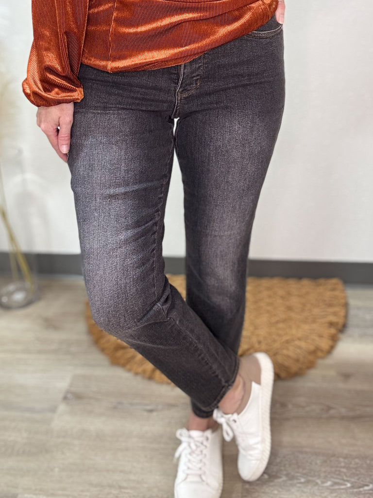 Judy Blue brand denim jeans in a dark grey shade! Slim fit, Mid-Rise style with tummy control in the waist. Fits true to size.