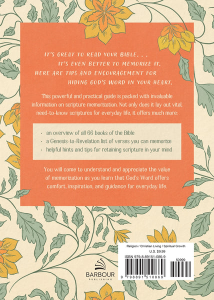 This powerful and practical guide is packed with invaluable information on scripture memorization. Not only does it lay out vital, need-to-know scriptures for everyday life, it offers much more: an overview of all 66 books of the Bible a Genesis-to-Revelation list of verses you can memorize helpful hints and tips for retaining scripture in your mind.